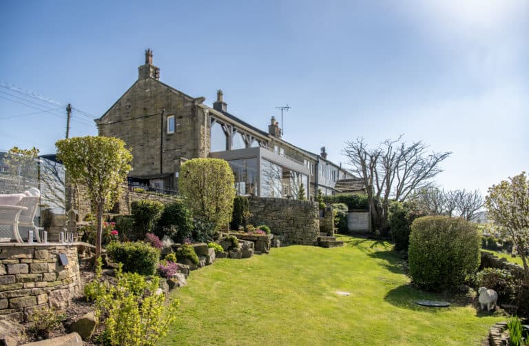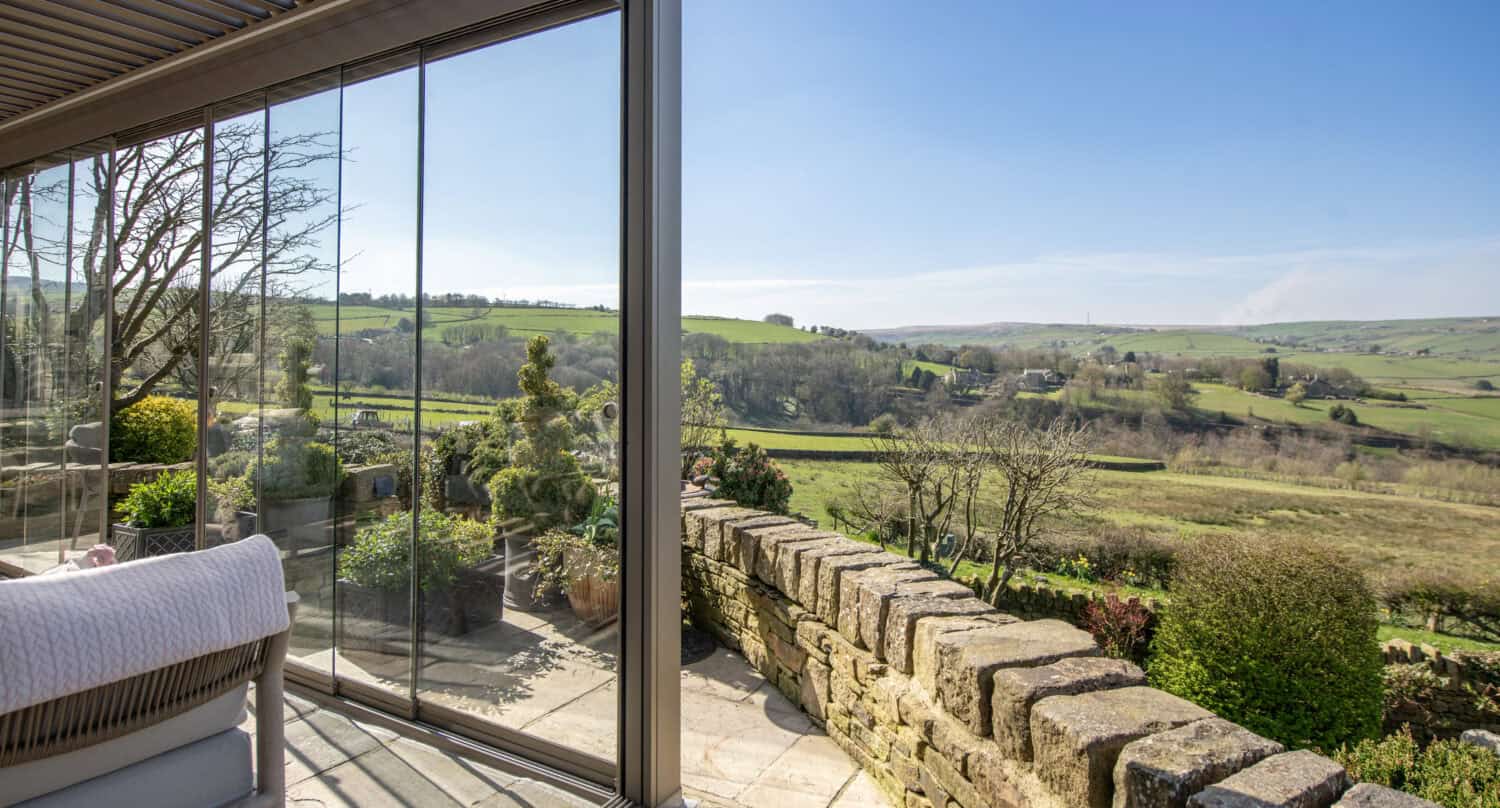 The owners of this traditional home are fortunate enough to have a rear elevation that sits above a valley overlooking the West Yorkshire dales. The property leads out onto a raised patio that sits atop the lawn to provide the perfect vantage point to embrace and enjoy the beautiful surrounding views.
