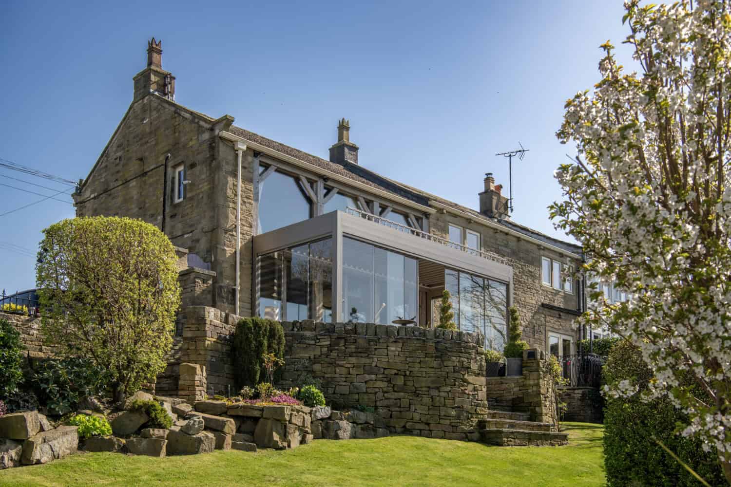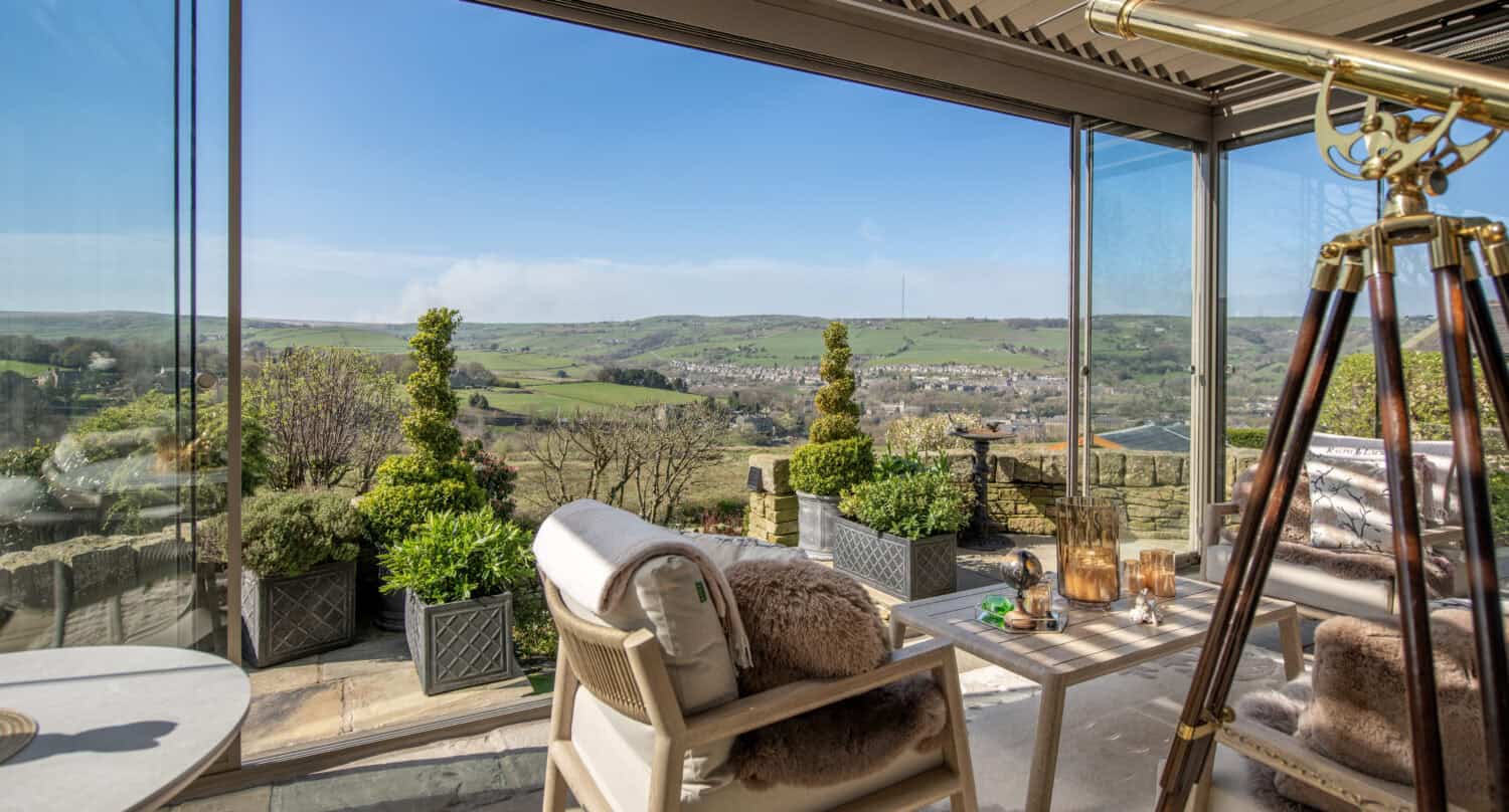 With their home positioned in such a fantastic location it is understandable why they were looking for an outdoor living solution that would allow them to use their outdoor space more often. After browsing online, they visited our impressive Leeds showroom and explored the functionality and custom options of our bioclimatic pergolas. We then visited the customers at home to carry out a detailed survey and confirm all the specifications for a bespoke and wall mounted pergola.