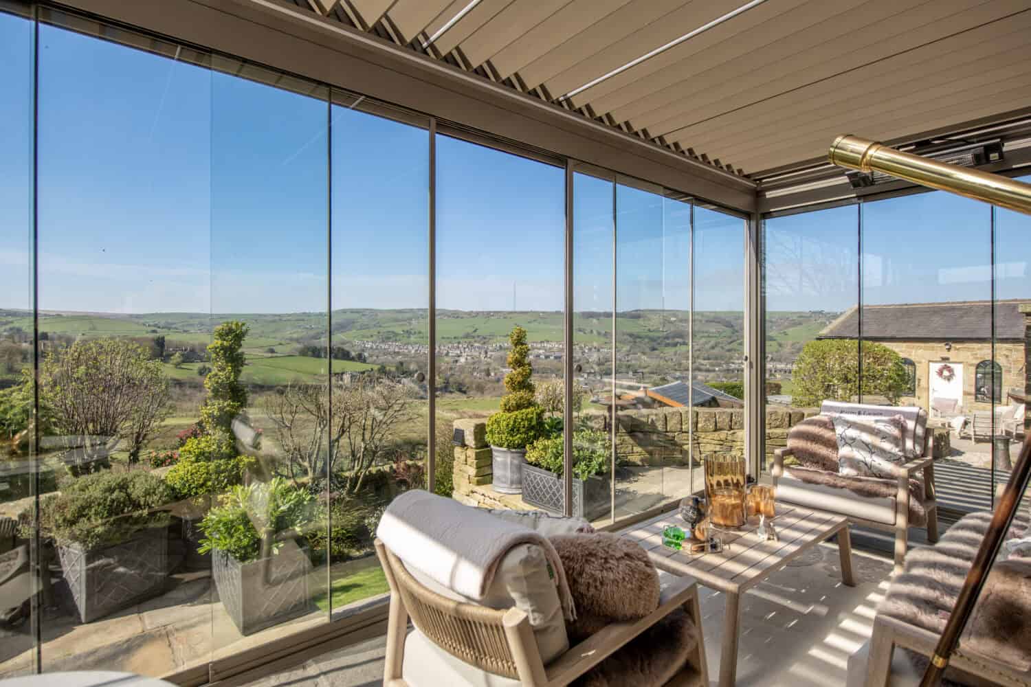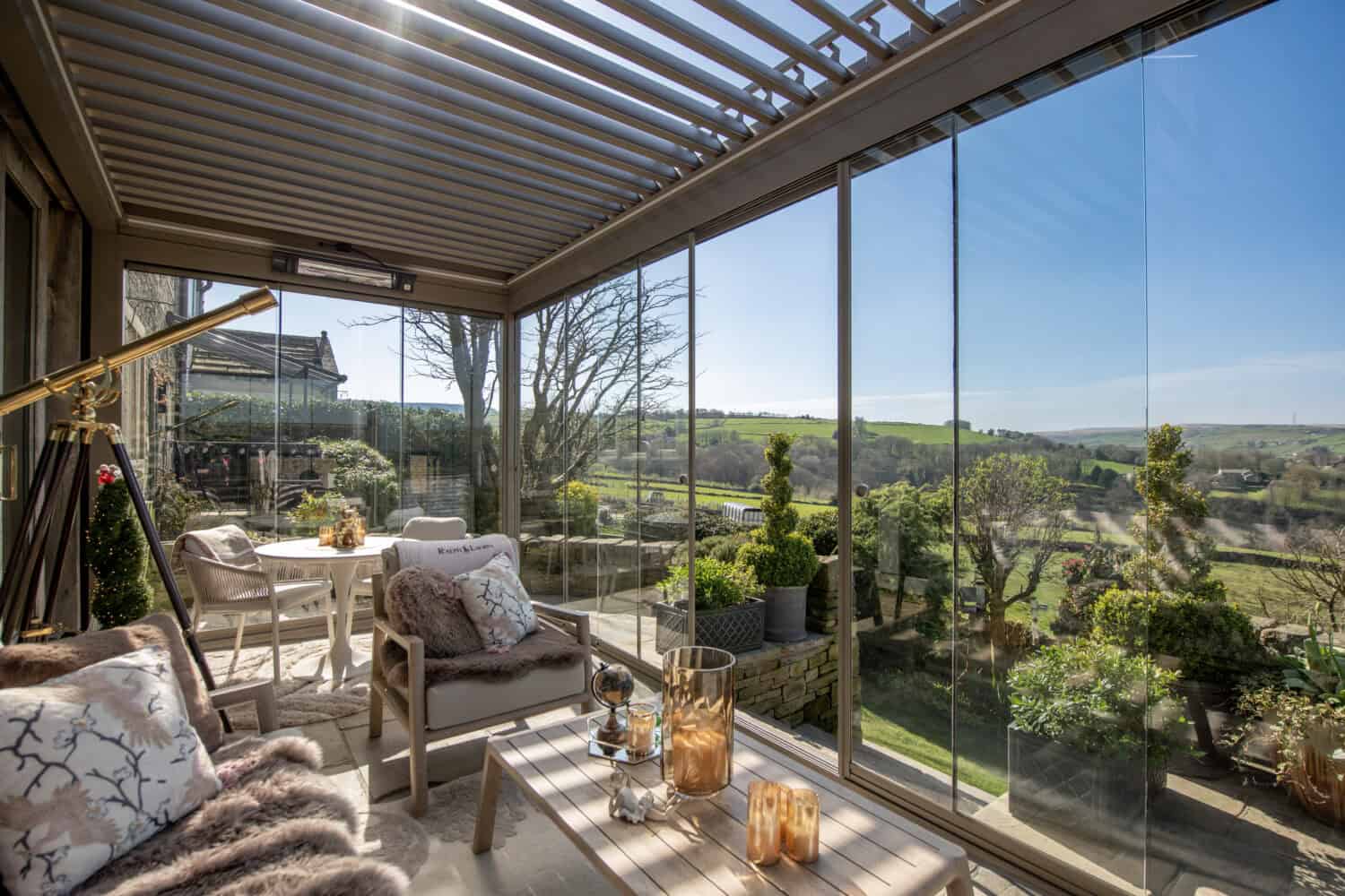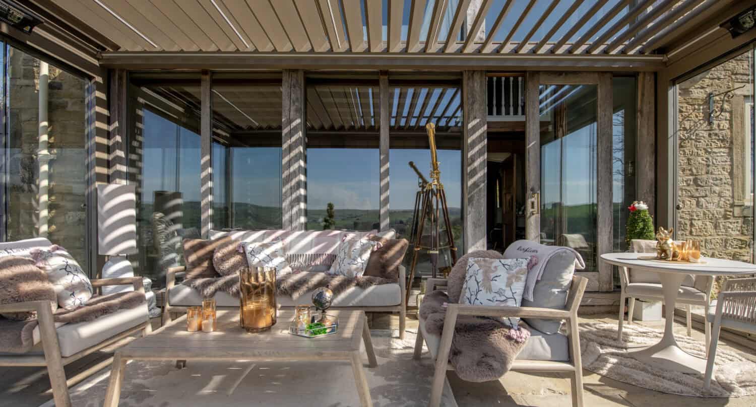 The patio area is in a beautiful location but also a very exposed one, so the homeowners wanted to make the most of the location while benefiting from the protection that would allow them to use the space throughout the year.