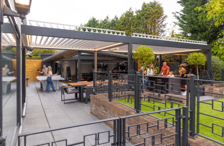 The owners wanted to put their own stamp on the property by replacing some of existing products. They wanted to add a contemporary look to the front of the property with a new front door, and a glazed atrium linking the front and back of the house. The atrium also acts as a light filled gateway connecting the main house to the garage. The clients wanted the rear of the home to be as open-plan, light and modern as possible.