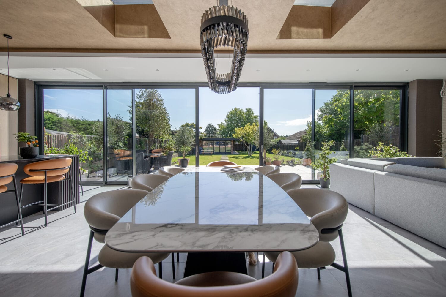 Our Romford showroom is an inspirational space with all our products beautifully laid out in true to life settings. After seeing our products first hand and discussing their requirements with our team & their interior designers Bulgaro Interiors, the homeowners decided to commission Express to manufacture and install the aluminium windows, skylights, sliding doors & bi-fold doors required to create their dream home.