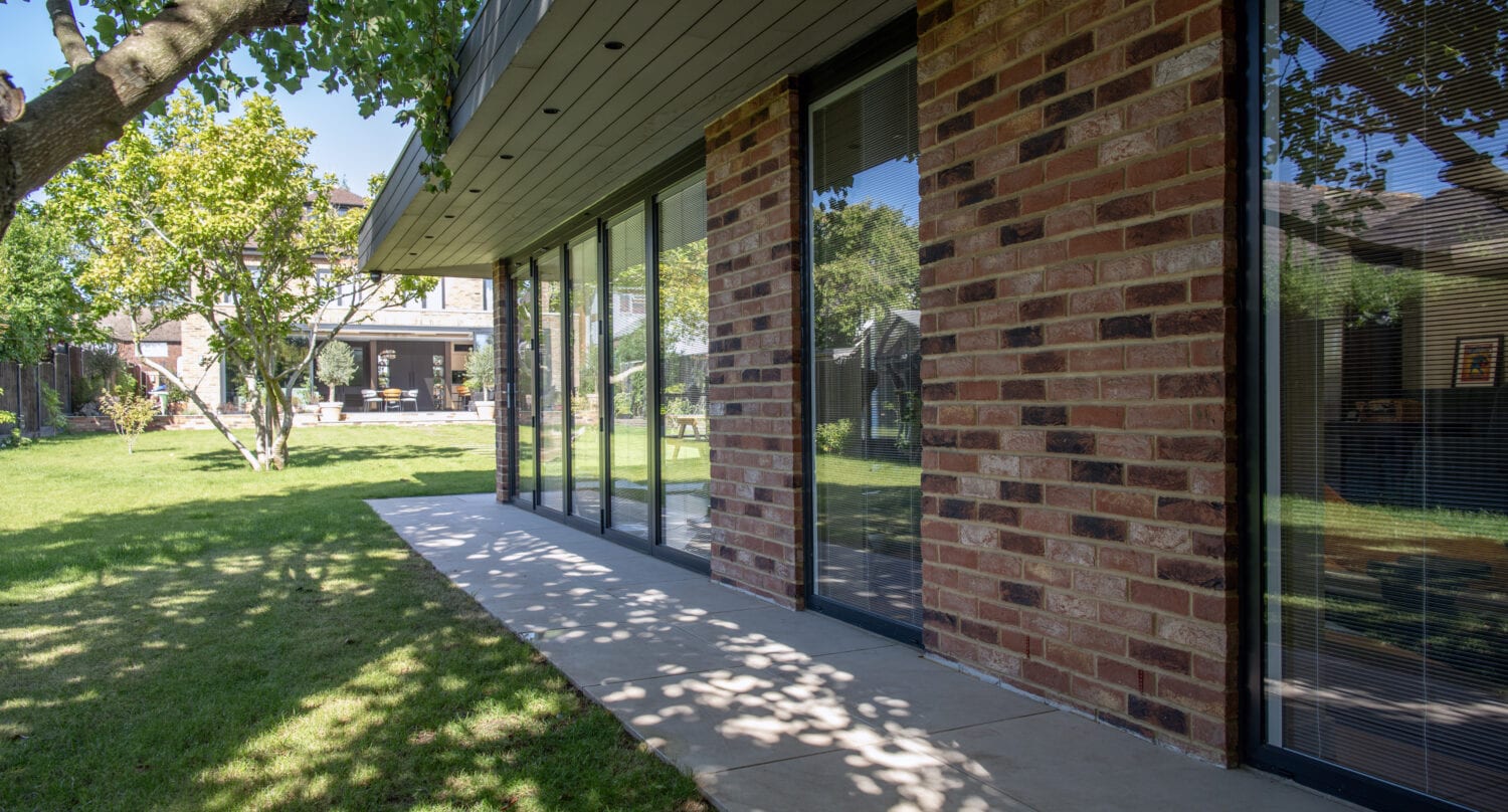 Lift and slide doors are perfect for huge doors such as this, so we used our heavy-duty XP Infinite system complete with a slim line 47mm interlock to create the backdrop to this new glass extension. The beauty of our lift and slide doors is that the gearing elevates the glass making it easy to slide even at huge sizes such as this. The lift and slide function works in reverse also, allowing you to drop the gearing onto the roller which secures the door in place in any open position, a great solution for ventilation or for when children are playing in and around the doors. Lift and slide doors are ideal for exposed high weather locations & for huge door sets such as this. The lift and slide functionality is extremely popular among families with young children, and people in their senior years who want a door that is very easy to slide and operate.