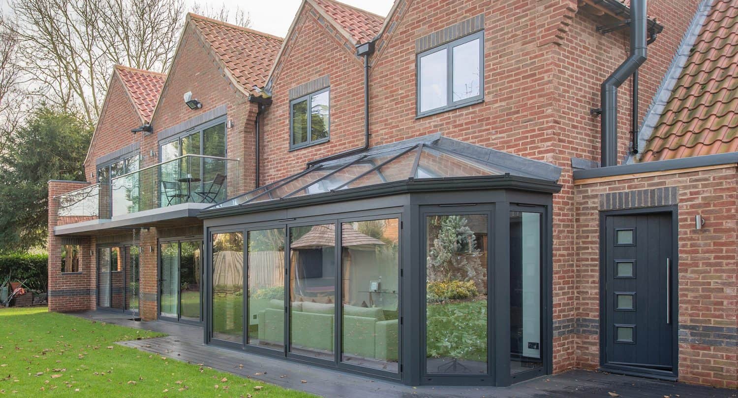 This festive setting in Nottingham is a new-build home packed full of our bespoke, British-made products. This home boasts an extensive array of our XP View bi-folding doors, French doors, a double-hipped lean-to roof, a combination of fixed, tilt & turn, and casement windows, as well as two curtain wall screens.