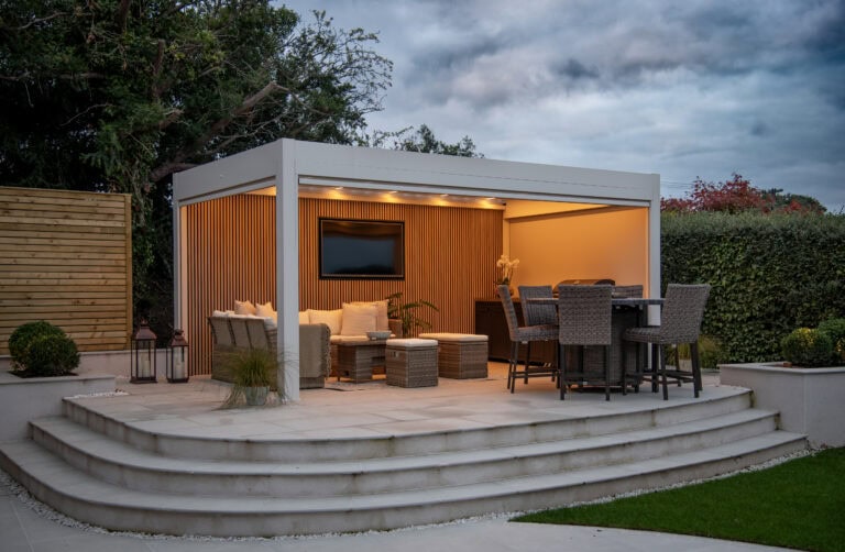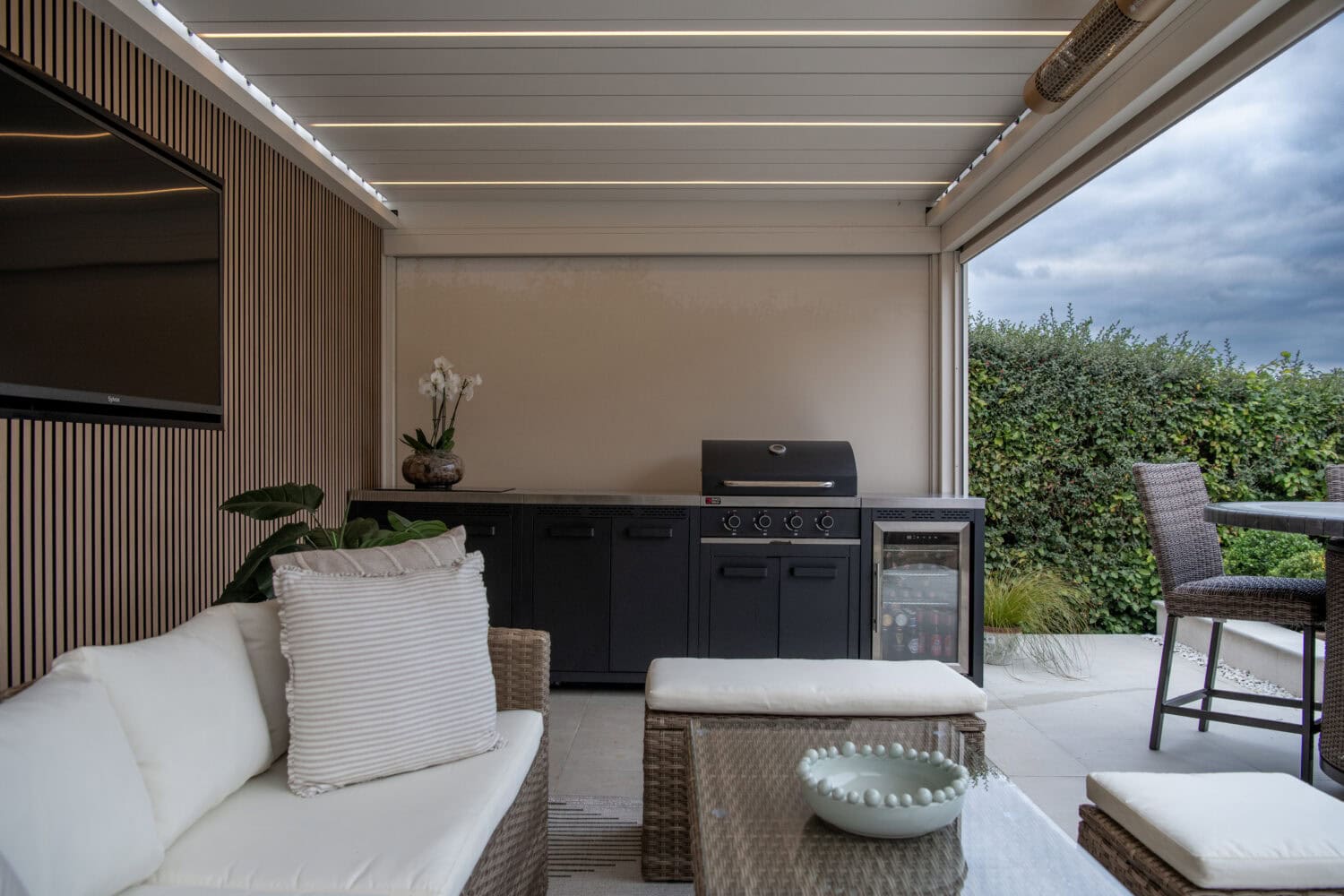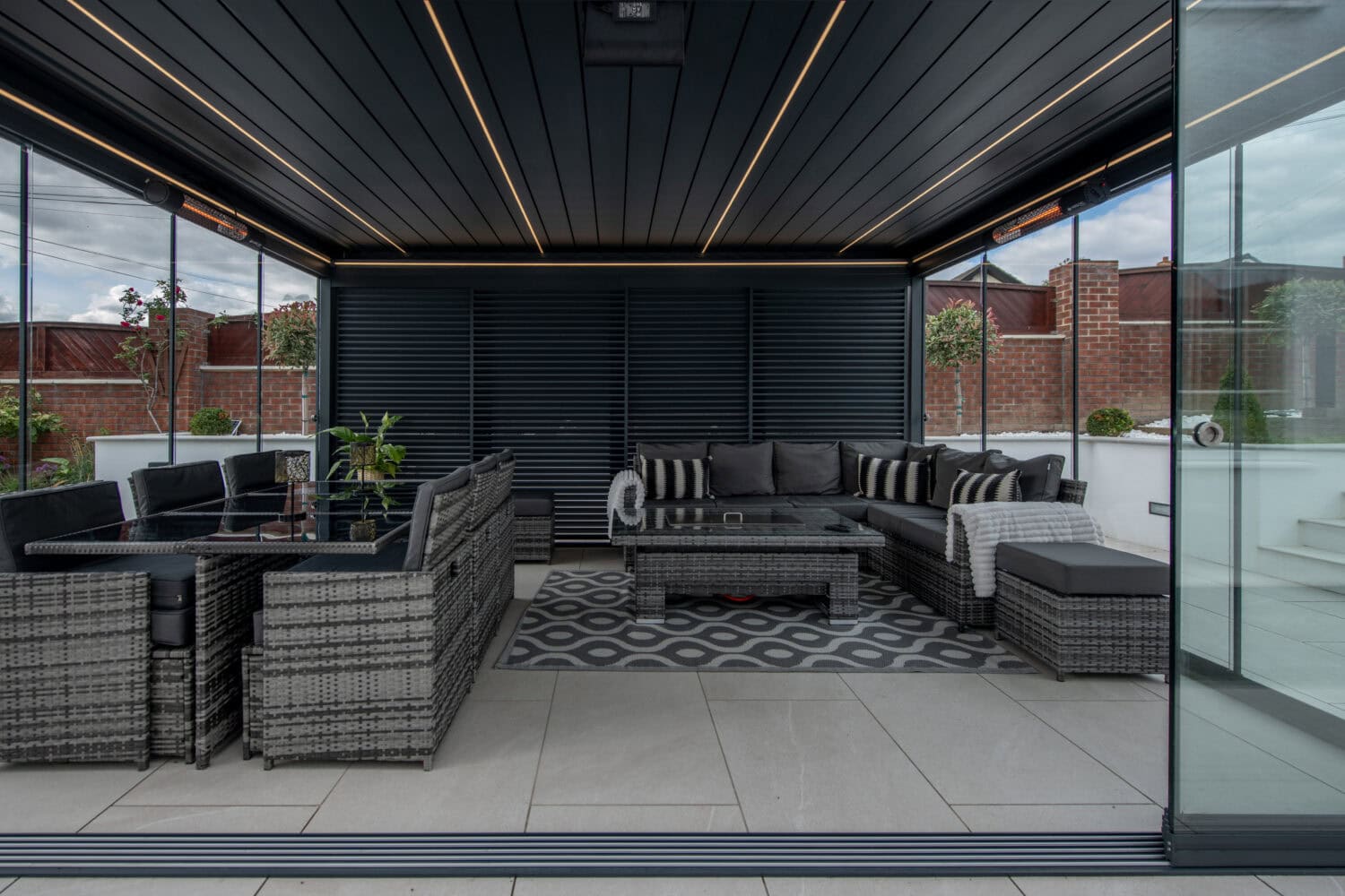 Our pergolas are innovative outdoor solutions designed to transform your outside space into a versatile, stylish and flexible living environment. With bespoke designs and a huge range of custom options you can create your perfect space tailored specifically for your requirements. Infrared heating, speakers, power sockets and lighting details often set the scene for our pergola but it’s the wide choice of side enclosures that often determine how our pergolas will be used and enjoyed.