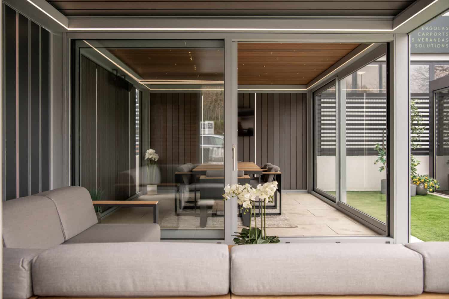 The strength and weather performance of the climate, glass and fixed roof Winsol pergolas makes them the perfect product to combine with our industry leading doors and windows. Transform your outdoor pergola into a top specification and modern garden room or glass room by combining premium aluminium doors & windows with the worlds best pergolas.