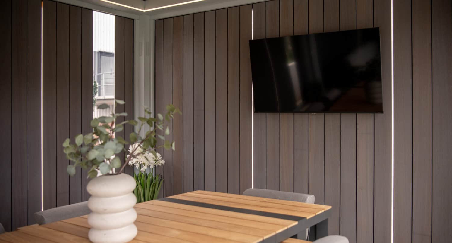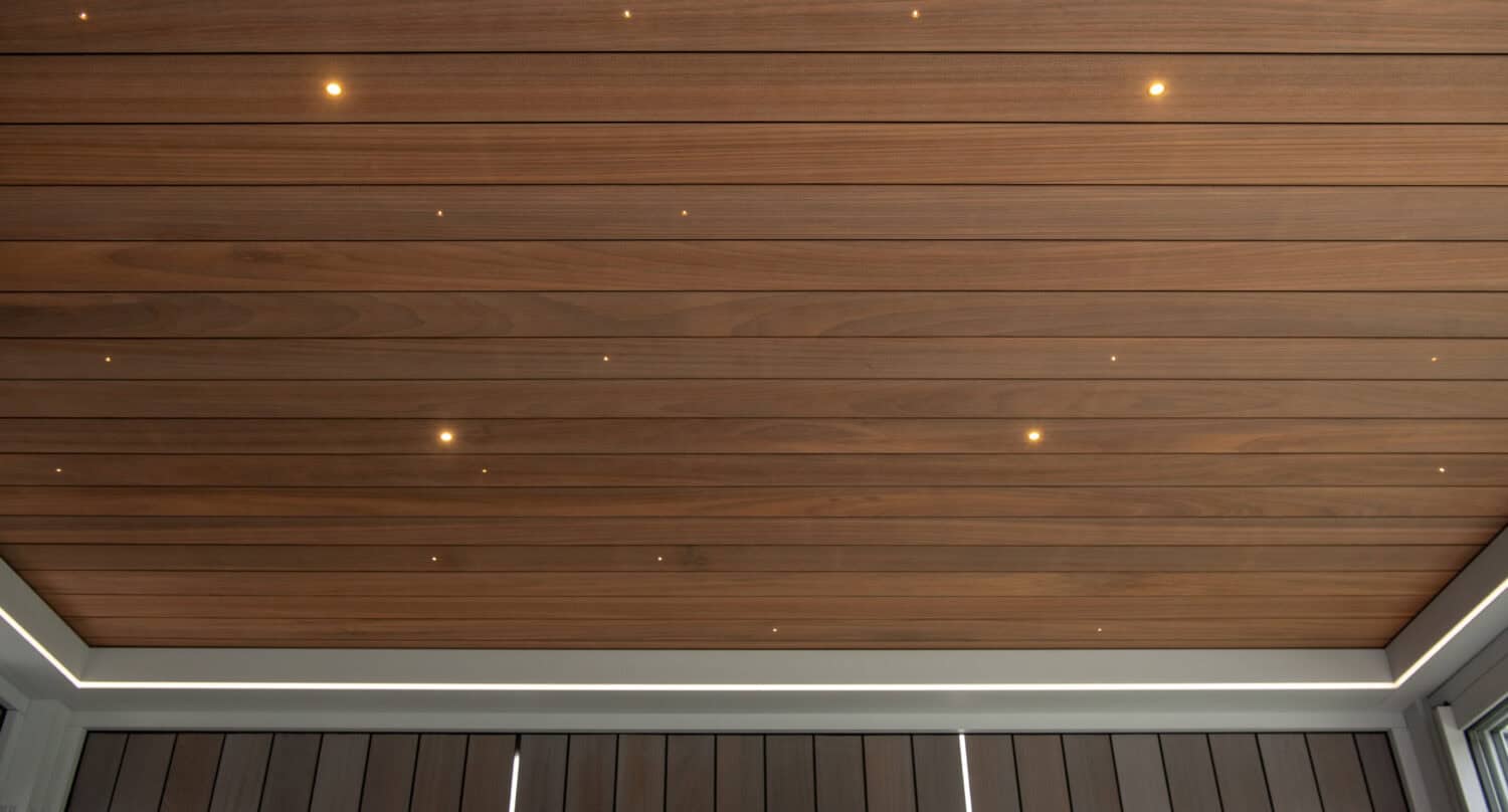 The fixed roof solution is made from real wood, a soft yet modern appearance that is 100% weathertight.