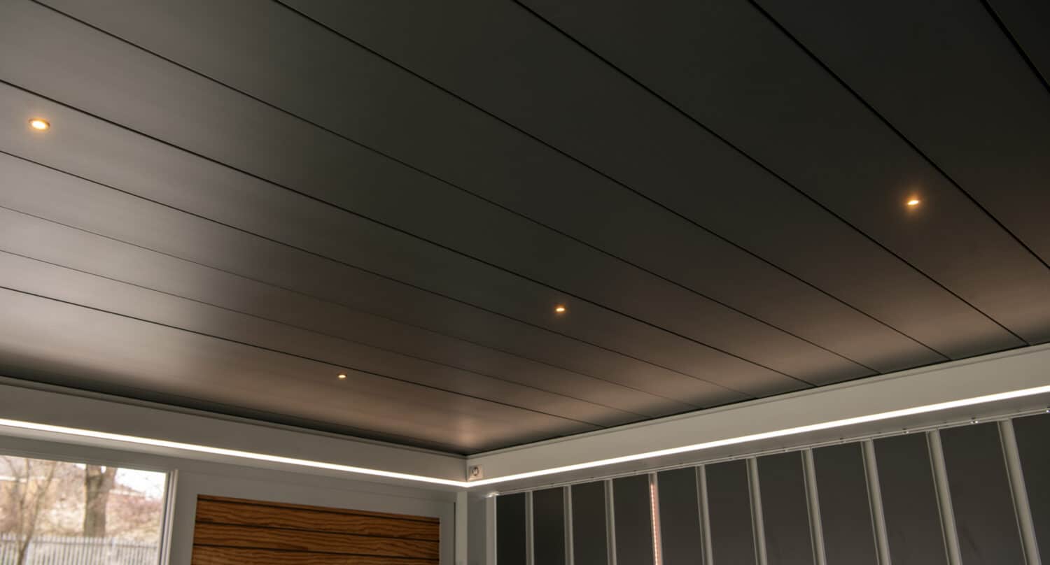 There are lighting options for every occasion. We can offer dimmable light strips around the perimeter, dimmable spot lights in the side beams, roof structure and louvres. You can even enjoy a starry sky feel under the pergola with small LED lights in the roof that create a starlight affect, and all of these options are available in any colour you desire.